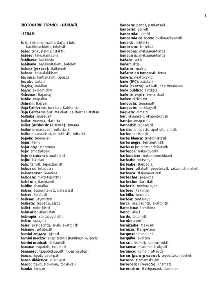 Nahuatl Diccionario Letra B Pdf